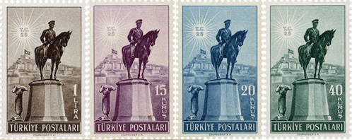 29 Ekim 1948 tarihinde Cumhuriyetimizin 25. yıldönümü nedeniyle Courvoisier Matbaasında fotogravür tekniği ile basılan hatıra pulları, koleksiyoncuların büyük beğenisini kazandı. Tema olarak Cumhuriyet Devrimi ve Kurtuluş Savaşımızın “en güzel anlatımı” olan Zafer Anıtı kullanıldı. Anıt, aynı zamanda gelecek kuşaklara askeri, siyasi ve kültürel bağımsızlığımıza göz dikenlere karşı daima hazır olma vasiyeti niteliğini taşıyordu.