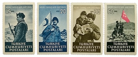 1952 yılında “Kore Savaşları” konulu pul emisyona sürüldü. Kore Savaşı neticesinde Kuzey Atlantik Paktı (NATO)’ya alınan ülkemizin Posta İdaresi, 1954 yılından 1972 yılına kadar NATO Yıldönümleri serilerini emisyona sürdü.