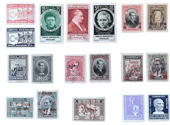 Balkan ülkelerinin kardeşliği temelinde kurulan "Balkan Antantı" Serileri, Dünyanın kadın temalı ilk serisi olan "1935 Kadınlar Kongresi" Serisi, 1936 Montrö Antlaşması “Boğazlar Serisi”, “İzmir İktisat Kongresi, İzmir Sergisi ve Enternasyonal Fuarı” Serileri, “Sivas Demiryolu Hattının Açılışı” anısına basılan seri, “Türk Tarih Kongresi” ve “Harf İnkılabı” Serileri, Atatürk döneminde basılan pullar arasında yerini aldı.